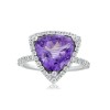 Diamond Ring in 18K white gold (2.916 Grams) with 3.1 Cts Amethyst Trillian Cut Stone & 0.715 Cts Round White Diamonds