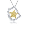 The perfect gift for your loved ones that will surely make a memorable impression. This Pendant is Crafted in 18K White Gold with the Elegant Blend of Natural Yellow and White Diamonds. One Side Zigzag Square-Shaped Pendant with Natural Yellow Center Diamond Will be the Attraction of the Crowd in Anyone's Next Gathering.